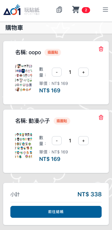 在結帳頁面確認插圖貼的樣式與組數。每組包含的貼紙張數會標註在商品說明中。